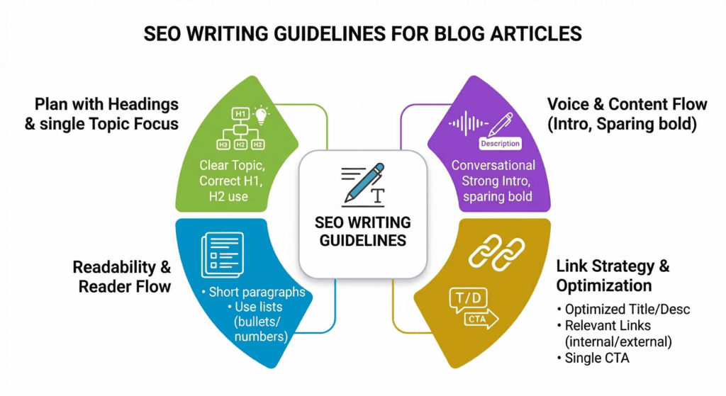 These guidelines will help you write blog articles that are easy to read, easy to publish, and perform well in search engines. Think of this as writing for real people first, while also helping search engines understand what your article is about. 1. Article Structure Use headings to organize your content clearly. Example structure: Rules: […]